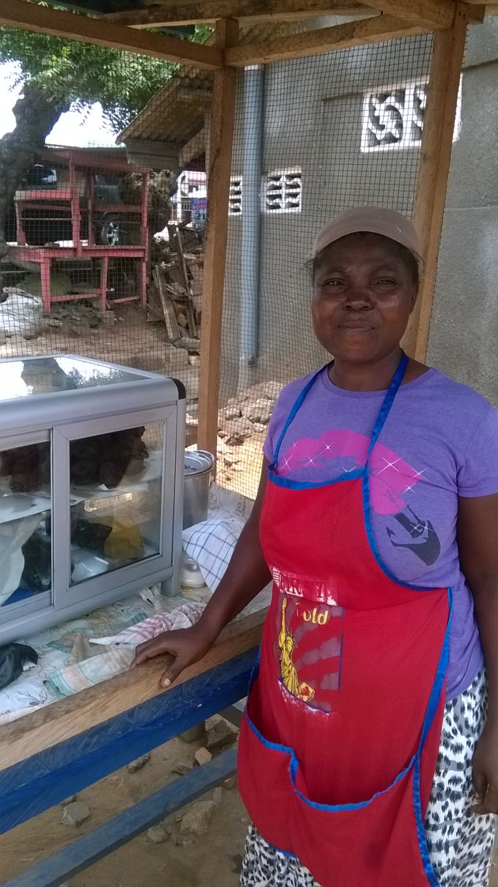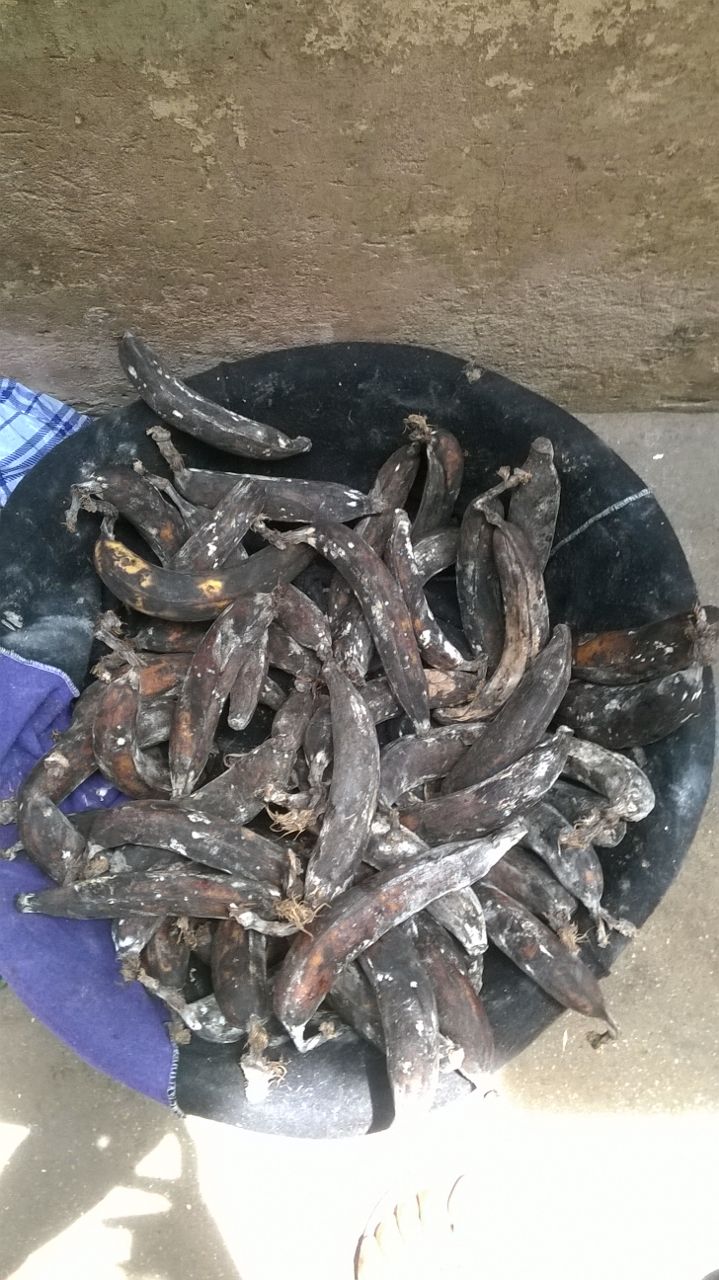 25/02/2015- De bonen voor het winkeltje van grootmoeder Mary zijn gekocht. Ook heeft Mary plantain (soort van banaan op foto 3) gekocht om bij de bonen te verkopen. Volgende week begint de timmerman aan het winkeltje. Voor nu verkoopt Mary de bonen in de kleine box op foto 2.
