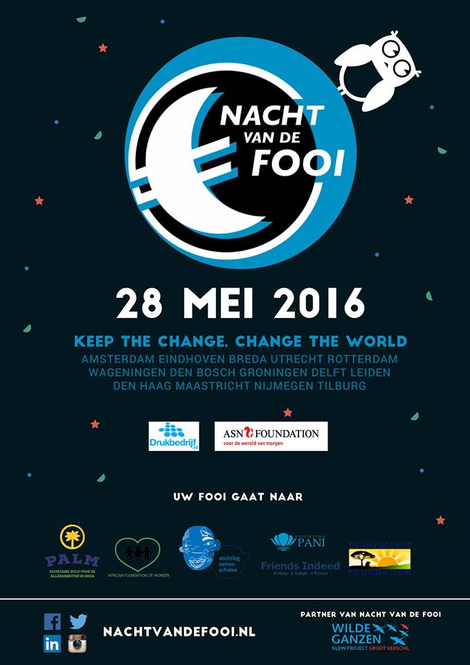 25/05/2016- Ben jij ook bij de Nacht van de Fooi op 28 mei? De fooi die je op deze dag geeft, maakt een groot verschil voor de gesteunde ontwikkelingsprojecten. Wilde Ganzen zal de uiteindelijke opbrengst verdubbelen dus jouw bijdrage is het dubbele waard! Keep the Change, Change the world.