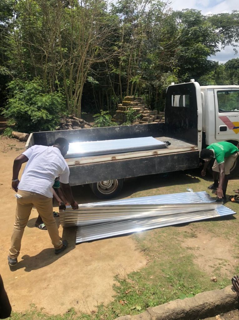 15/09/2022- Het dak van de nieuwe school in Pataase, Ghana is gekocht. Begin volgende week zal het geplaatst worden. De metselaar is nog bezig om een paar gaten op te vullen, zodat het volgende week geplaatst kan worden. Wij zijn blij met deze mooie nieuwe ontwikkeling.