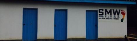 01/10/2014- Het logo van Stichting Missahoe Wonder is op het toiletgebouw geschilderd.
